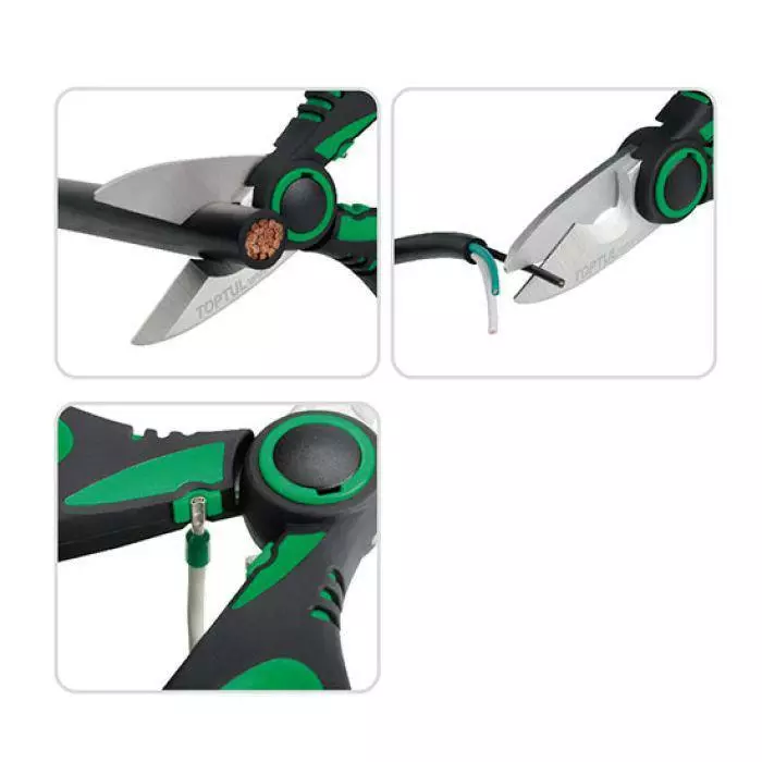 Ножницы электрика универсальные усиленные TOPTUL SBBA0516 представляют собой режущий инструмент, который применяется в электромонтажных работах для резки кабеля, снятия изоляции и опрессовки клемм, резки пластиковых деталей, расходных материалов и множества других задач.Конструкция ножниц предусматривает наличие всех необходимых опций, которые делают работу электрика максимально оперативной и качественной.
