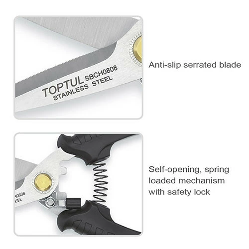Ножницы многофункциональные 8" TOPTUL SBCH0808.Лезвие изготовлено из высококачественной нержавеющей стали JIS SUS420J2