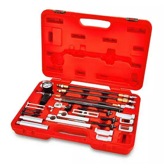 Разсухаритель клапанов универсальный 24 ед. TOPTUL JGAI2402 – это специально разработанный инструмент для снятия и установки пружин клапанов и сальников клапанов в разных транспортных средствах без необходимости снимать головку блока цилиндров или прокладку с двигателя. Этот набор незаменим для профессиональных автомехаников и любителей, работающих в тесных условиях моторного отсека.Основные характеристики