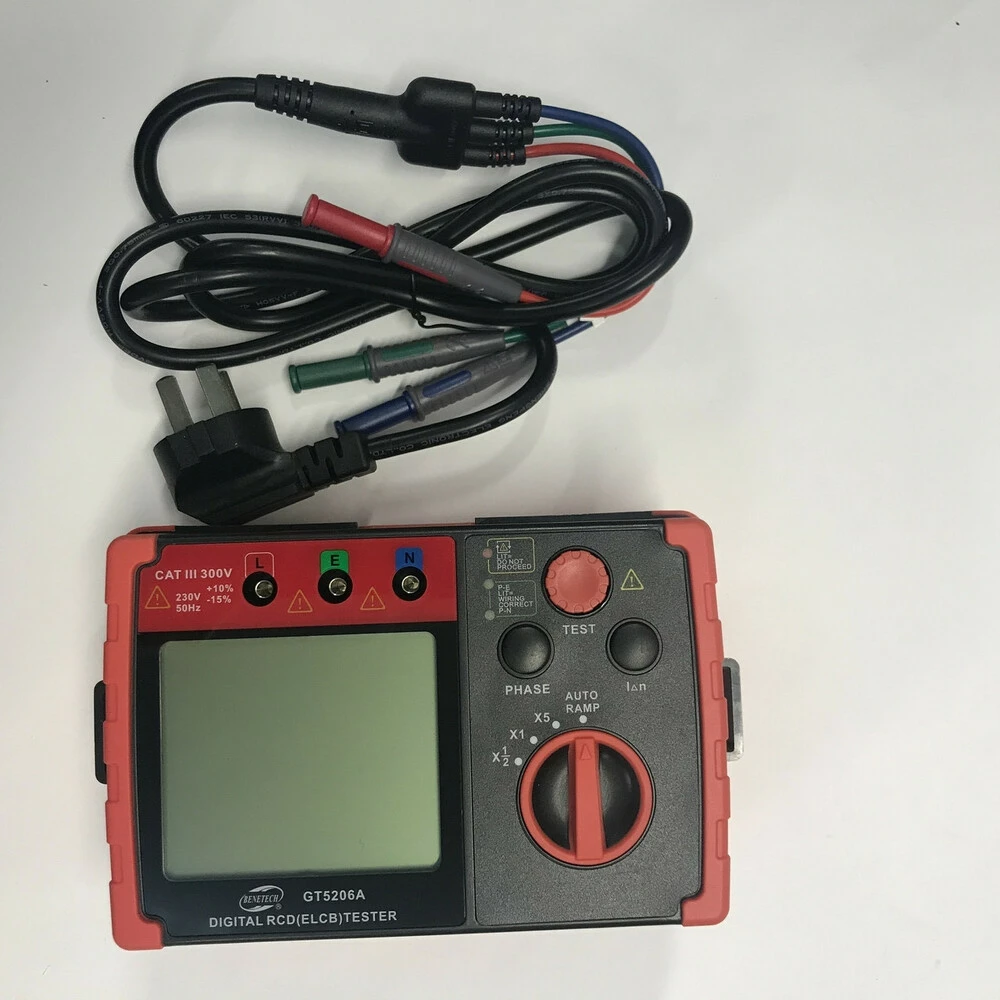 Цифровой тестер устройств защитного отключения (УЗО) BENETECH GT5206AИзмеритель УЗО BENETECH GT5206A предназначен для проверки работоспособности устройств защитного отключения.