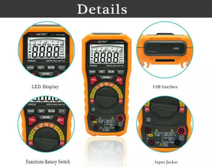 Цифровой мультиметр PROTESTER PM8236 – портативный интеллектуальный многофункциональный прибор для измерений, сочетающий удобство, точность и безопасность. Благодаря автоматическому выбору диапазонов, большому ЖК-дисплею с подсветкой и широким возможностям он станет идеальным инструментом для профессионалов, студентов, мастерских и домашнего использования.Основные преимущества и функции:
